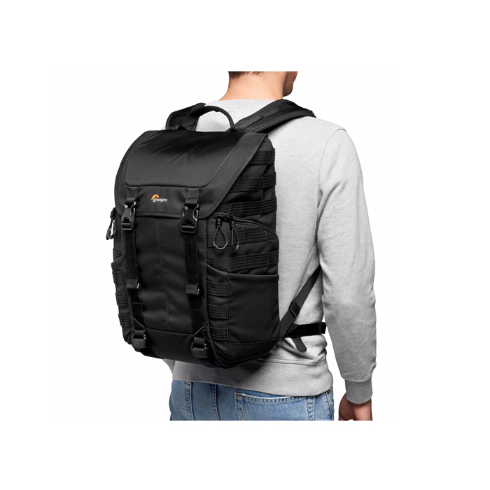 Lowepro ProTactic BP 300 AW II er en fleksibel fotorygsæk med let tilpasseligt opdelingssystem. Tasken er velegnet til et DSLR-kamera, med monteret 70-200mm f/ 2,8, 2 ekstra objektiver og en flash. Der er plads til et mindre stativ på begge sider.