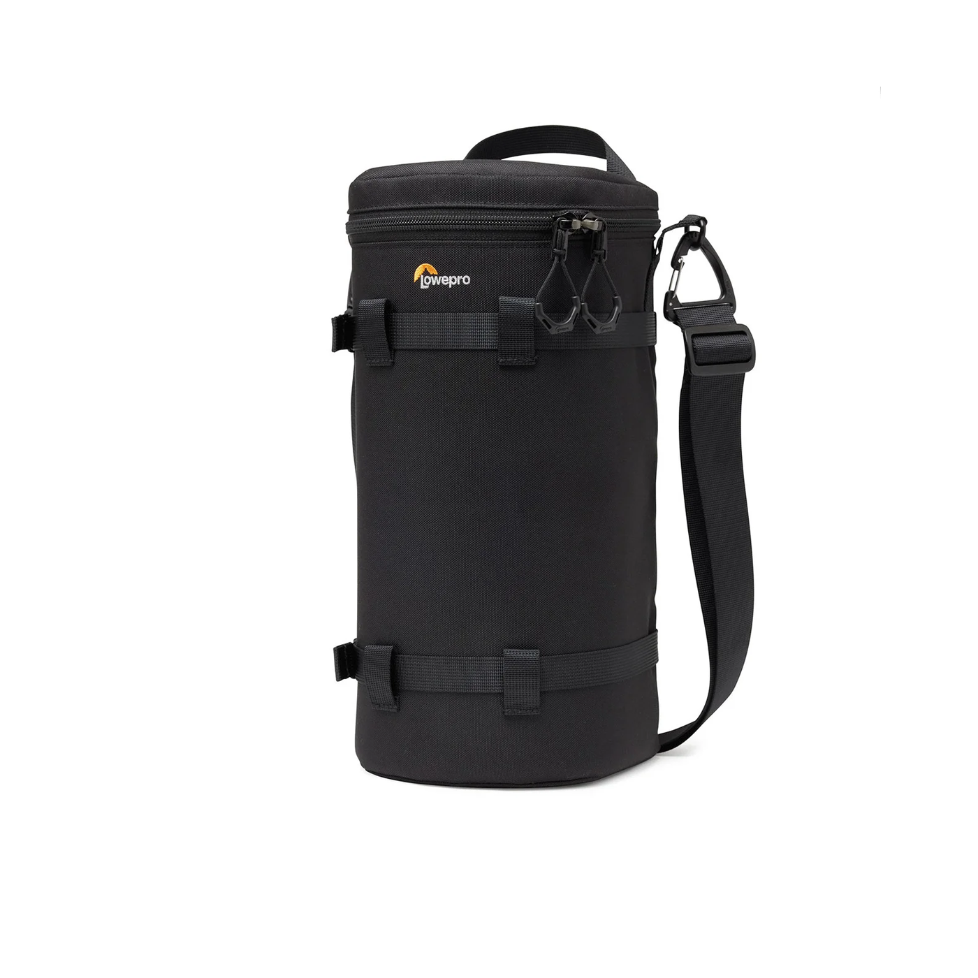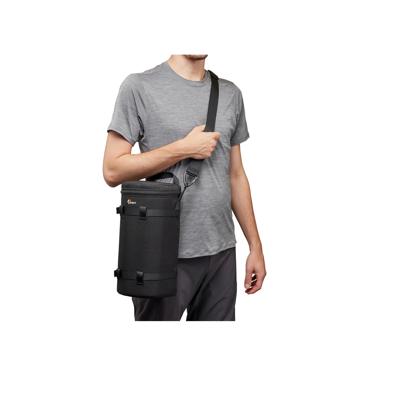 Objektivtasken har SlipLock™-fastgørelsessystem, som gør det nemt at fastgøre til alle SlipLock™-kompatible tasker eller bælter, f.eks. ProTactic III-rygsække og Utility Belt. Den har også ekstra vandrette stropper, som giver stabilitet, når den sættes på et almindeligt bælte, og den har en aftagelig skulderrem, så den kan bæres på flere måder.