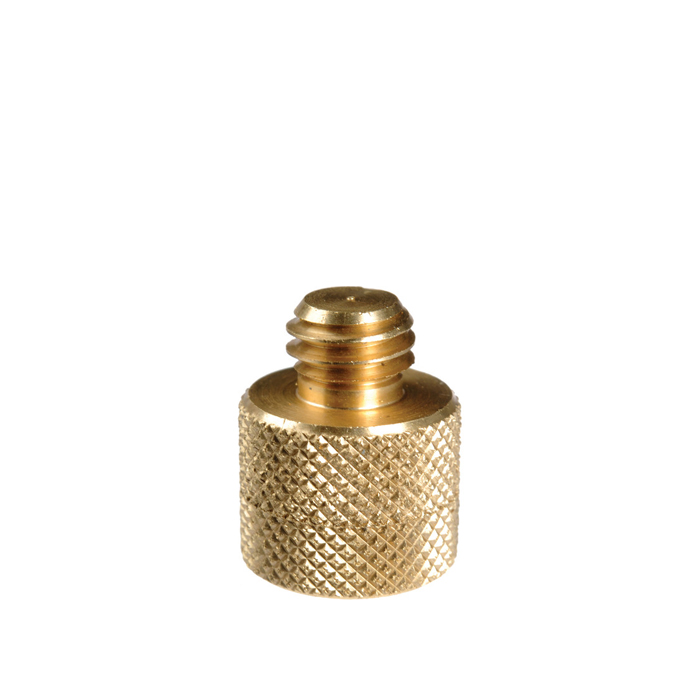 Lille adapter fra Manfrotto med 3/8" han gevind udvendigt - 1/4" hun gevind indvendigt.