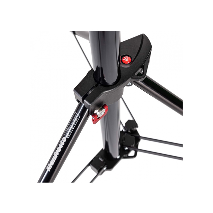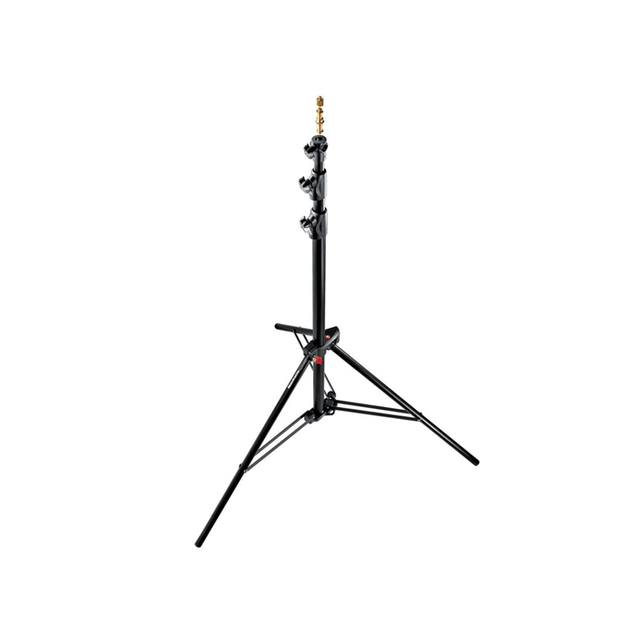 En serie af lampestativer fra Manfrotto med den store fordel at de kan stakkes sammen og derved fylder meget lidt, når de ikke er i brug.