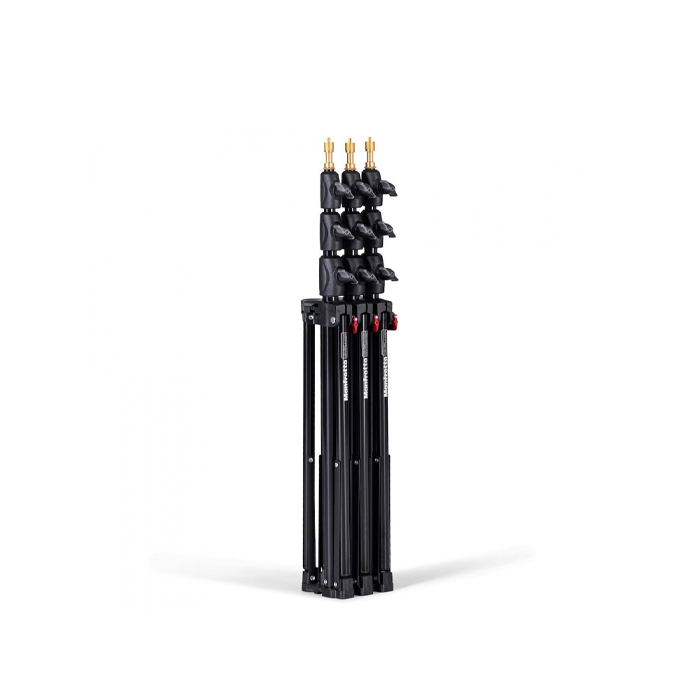 Sort Manfrotto 1051BAC Mini Aluminiumsstativ, som har en maksimum højde på op til 2,1 meter, og som kan holde op til 4kg. Manfrotto 1051BAC stativet har QSS (Quick Stack System), som betyder, at når stativet er foldet sammen, kan to eller flere stativer sættes sammen, så de fylder mindre, og derved bliver nemmere at transportere.