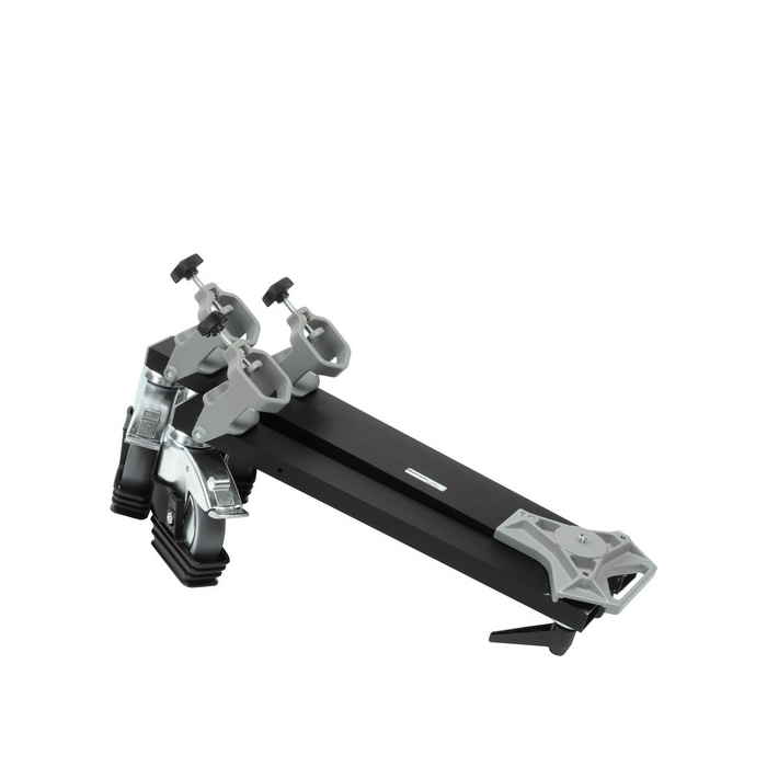 Dolly til anvendelse på store stativer, konstrueret til at modstå høje belastninger. 127mm hjul som kan låses manuelt. Manfrotto 114 kan foldes for nemmere transport og opbevaring.