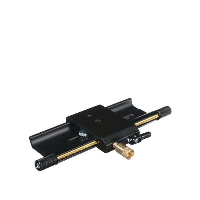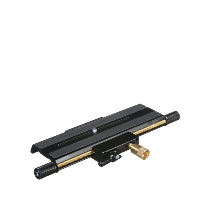 Totaltt kan Manfrotto 454 positioneres over 120mm fremad/bagud. Konstrueret robust i aluminium og med både 1/4"-20 og 3/8" skrue til montering på stativ og kamera.