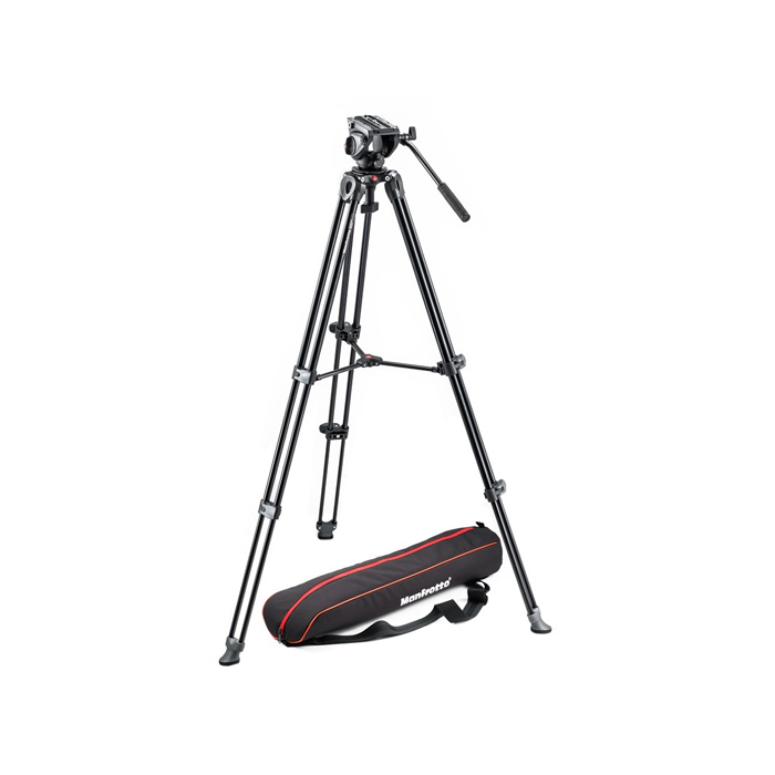 MVK502AM-1 Manfrotto videosystemet har 502 fluid videohovedet med indbygget 75 mm halvkugle, MVT502AM professionelt aluminium dobbeltbens stativ med midte spreder og polstret bæretaske.