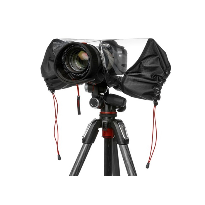 Regnslag for mindre kompakt DSLR med op til 70-200 mm objektiv monteret. Trækkes hurtigt over dit kamera og beskytter mod regn og i støvede omgivelser. Du kan få adgang til alle funktioner i dit kamera og objektiv.