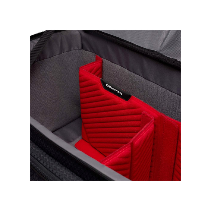 Baglommen er designet til at bære dokumenter, mens de to udvidelige sidelommer skaber ekstra plads til mere udstyr. Den ydre af både for- og baglommerne har også flere løkker til montering og ophængning af nyttige ting. Hovedkamerarummet byder på masser af plads, og mulighed for at organisere interiøret, som du ønsker, ved at bruge de 4 M-Guard skillevægge, hvoraf den vigtigste deler sig i to for ekstra fleksibilitet.