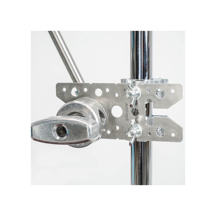 Pladen giver fleksibilitet i situationer, hvor pladsen er begrænset, ved at montere den på en C-stand-søjle for at tilføje et ekstra punkt til flag og scrims. Den er en alsidig løsning til montering af mikrofoner over personer eller kameraer til optagelser på bordoverflader.