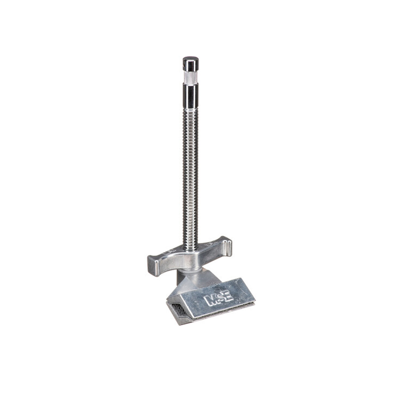 Den sølvfinish Matthews Matthellini Klemme med 6" End Jaw giver et sikkert og stabilt greb om en bred vifte af rør- og objektformer. End Jaw-designet betyder, at den faste kæbe er placeret for enden af den gevindskårne del af akslen, hvilket sikrer en fleksibel og sikker fastgørelse.