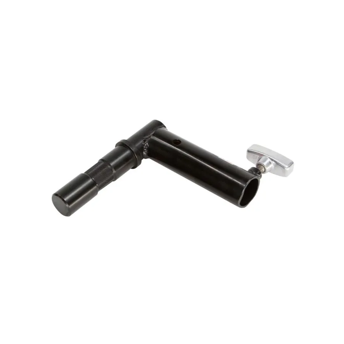 The Right-Angle Junior Adapter has a male 1 1/8" pin at one side with a female 1 1/8" receiver set at a right angle to it.