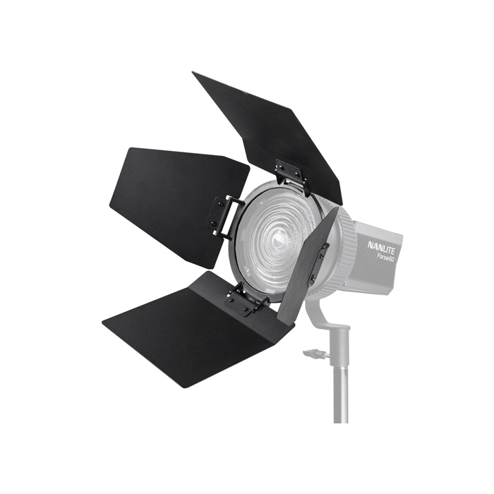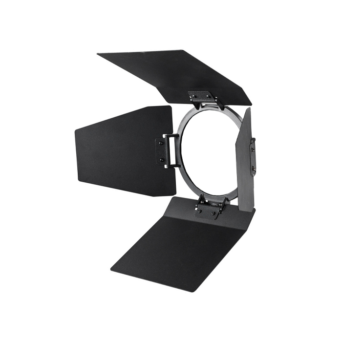 It mounts directly onto the front of Fresnel enabling you to narrow the spread and shape your lighting. Barndoors are useful for directing the light to fall on a specific area or using it as a flag to reduce any light spill.