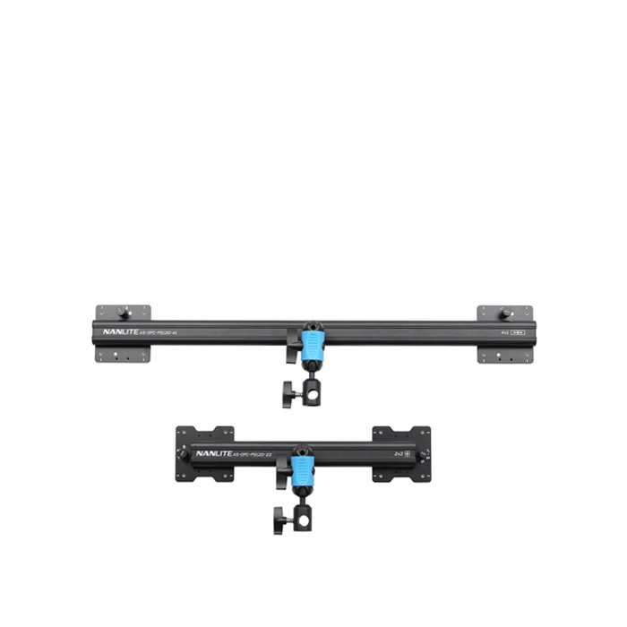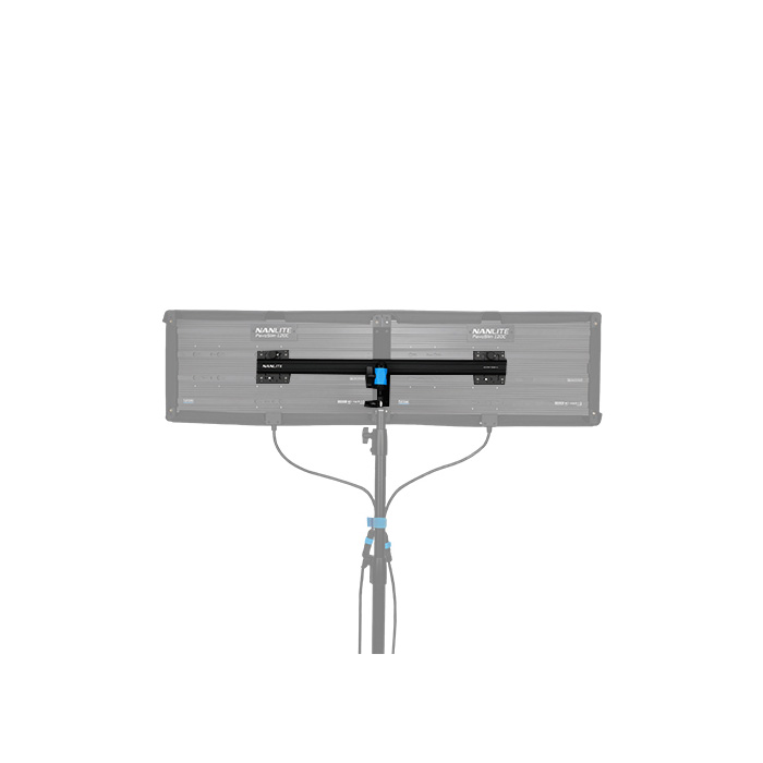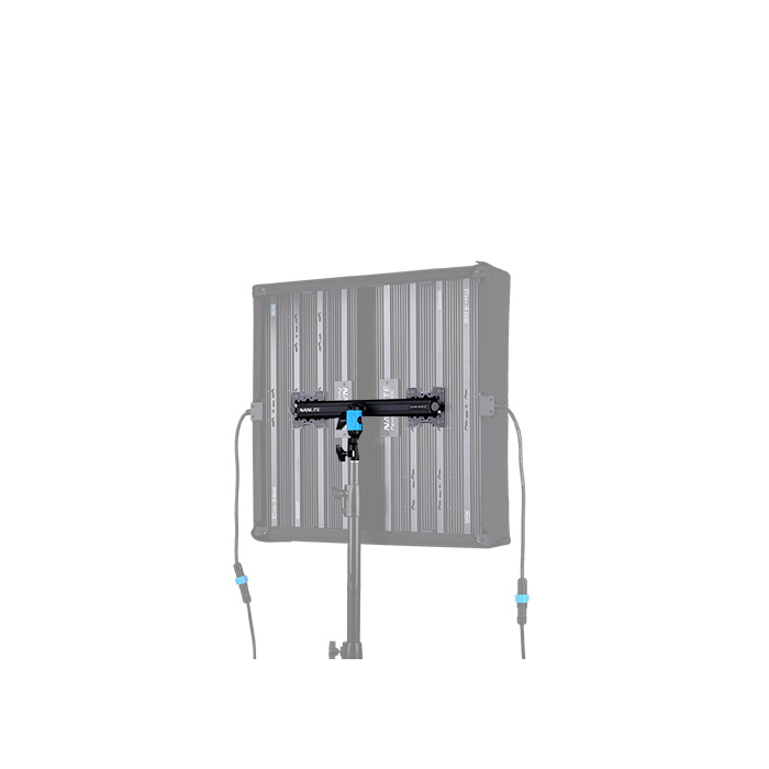 The coupling hardware attaches to the center mounting points on the back of the PavoSlim panels and utilizes the same 4-pin locking system as the PavoSlim mounts. There are two of these coupling brackets included at fixed lengths to accommodate either the 2x2 or 1x4 configurations. The center of the brackets features a stand mount that can be swiveled and locked into the exact position you need.