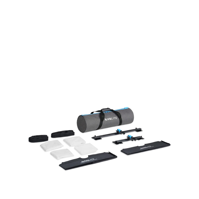 The Nanlite Dual-Panel Coupler and Softbox Kit provides the hardware needed to join two PavoSlim 120C or 120B LED panels together in either a 2x2 or 1x4 configuration. It also includes a folding softbox that can be fitted to either size, two sets of dual-layer diffusion and two egg-crate grids to accommodate both size configurations, and a carrying bag for storage and travel.