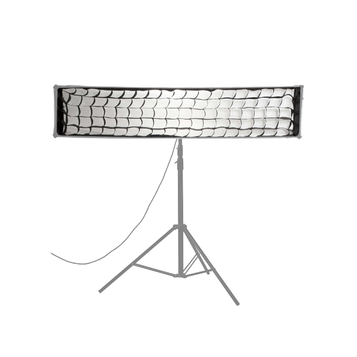 Nanlite Fabric Grid for Strip Softbox (140x30) mounts to the front of the softbox to minimize light spill and add directionality by tightining the beam angle 50 degrees. Great for selectivly lighting subjects without loosing the soft quality of light produced by the softbox. Attaches easily and swiftly via touch fasteners and folds down flat for storage and transport.