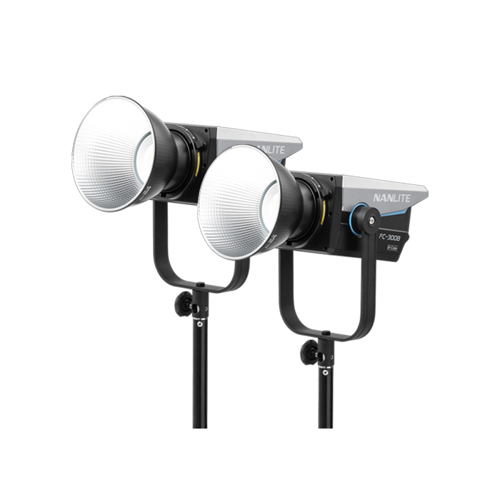 The Nanlite FC-300B is a bi-color LED spotlight that provides a powerful amount of light in a compact, lightweight, and stylish package. You can easily control dimming from 0 to 100% and with the twist of a knob achieve a wide range of looks, from warm indoor tones to bright daylight with its CCT range of 2700K-6500K. The high CRI rating of 96 and TLCI of 98 means your skin tones and other colors will always be accurate. It has easy-to-use onboard controls, Bluetooth for the free NANLINK app for iOS and Android, and 2.4G for more wireless control options. A locking, metal 3.5mm port even lets you control with DMX/RDM.