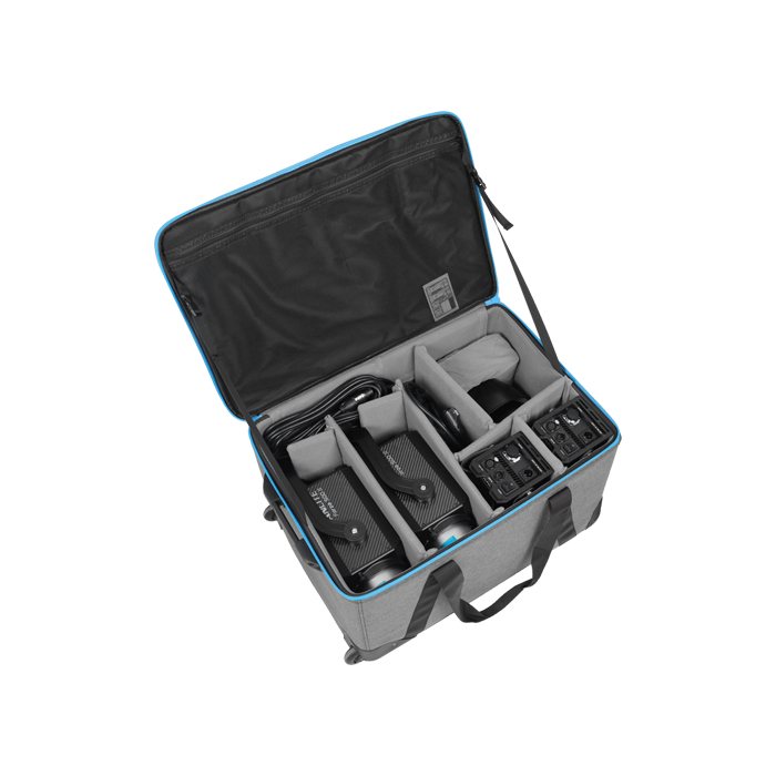 A stepless, one-sided lock allows easy positioning, and an umbrella mount gives you more light-shaping options. The upgraded yoke allows 360° rotation, it’s curved to provide greater tilting range for large modifiers, and the base is compatible with baby pins and junior pin mounts. Dimming can be fine-tuned in 0.1% increments. The head fan has 4 modes: Smart, Full Speed, Low Speed, and Off for absolute silence. A redesigned padded carrying case with improved cushioning safely holds everything. A USB port allows firmware updates that will add new features in the future, and it can supply power to wireless DMX receivers (sold separately).