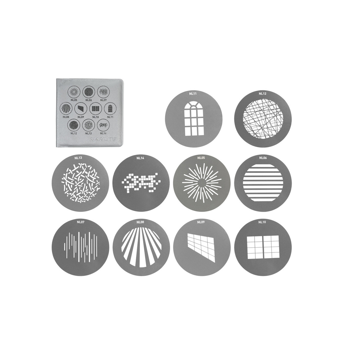 Nanlite Gobo-sæt 1 er en samling af 10 gobo-skiver, der er fuldt kompatible med PJ-FZ60-19/36 projektor-mounts. Sættet indeholder tre forskellige vinduestyper: buet, dobbelt og vinklet, samt nyttige mønstre som et lineært array og andre opdelingsmønstre. Brug dem til at skabe spændende baggrunde, realistiske skygger og refleksioner – og et væld af andre visuelle effekter.