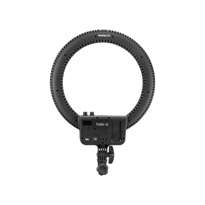 NanLite Halo 16 LED-ringlys giver et attraktivt, blødt, næsten skyggefrit lys med interessante, ringformede refleksioner i øjnene på dit motiv. Perfekt som en lyskilde til make-upinstruktioner, vlogging, fotografering, videooptagelse, fotoboks og mere.