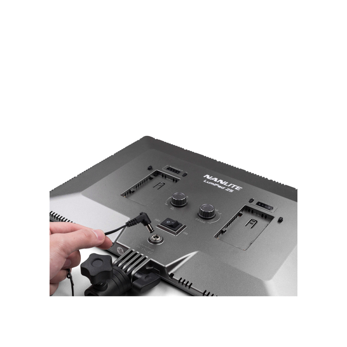 Lysintensiteten kan varieres fra 0 til 100 %, og den støjsvage luftkøling i LumiPad 25 er en stor fordel på videoptagelser, i lydfølsomme situationer. LumiPad 25 er klar til brug over hele verden takket være 110-240 VAC-strømadapteren, men den kan også køre på batterier (tilkøb) via den dobbelte NP-F-batteriplade, når der ikke er netstrøm til rådighed.