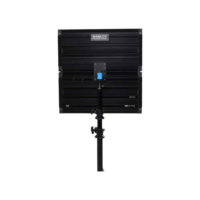 The back of each PavoSlim 240B/240C fixture has multiple 1/4"-20 sockets for flexible mounting in various situations. The control unit is designed with compatibility for mounting via a quick-release plate, which can be used with the included quick-release clamp for mounting to light stands or truss (also found on NANLITE Forza II series fixtures). The control unit has a useful hand carry strap which can also be used to hang it from a light stand.