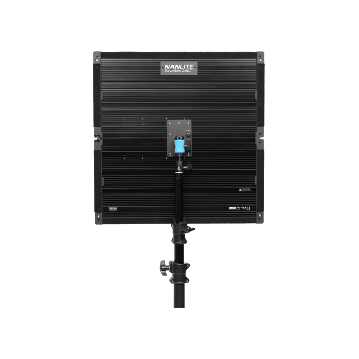 The back of each PavoSlim 240B/240C fixture has multiple 1/4"-20 sockets for flexible mounting in various situations. The control unit is designed with compatibility for mounting via a quick-release plate, which can be used with the included quick-release clamp for mounting to light stands or truss (also found on NANLITE Forza II series fixtures). The control unit has a useful hand carry strap which can also be used to hang it from a light stand.