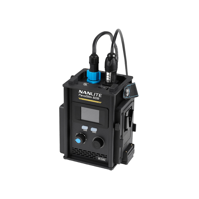 The PavoSlim 60B provide multiple power supply methods: PavoSlim 60B can be powered by AC power, NP-F and V-mount batteries. All power supply methods support full power output, making it excellent for both indoor and outdoor scenarios. Besides, the PavoSlim 60B support hot swapping among different power supply modes, allowing for ongoing shooting without interrupting operations.