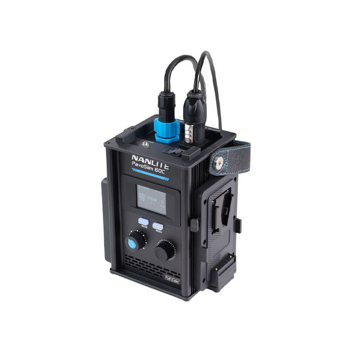 The PavoSlim 60C provide multiple power supply methods: PavoSlim 60C can be powered by AC power, V-mount batteries and NP-F batteries. All power supply methods support full power output, making it excellent for both indoor and outdoor scenarios. Besides, the PavoSlim 60C support hot swapping among different power supply modes, allowing for ongoing shooting without interrupting operations.
