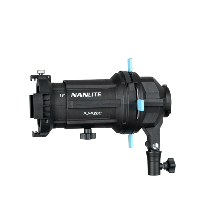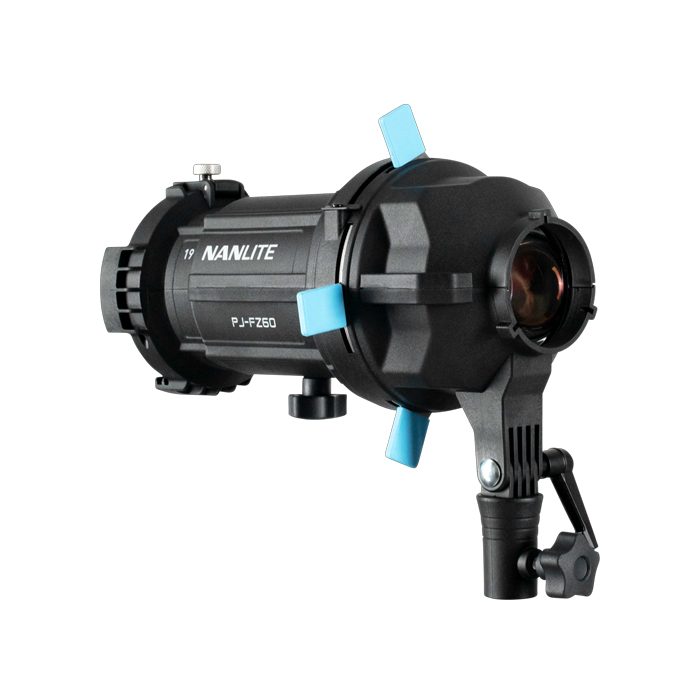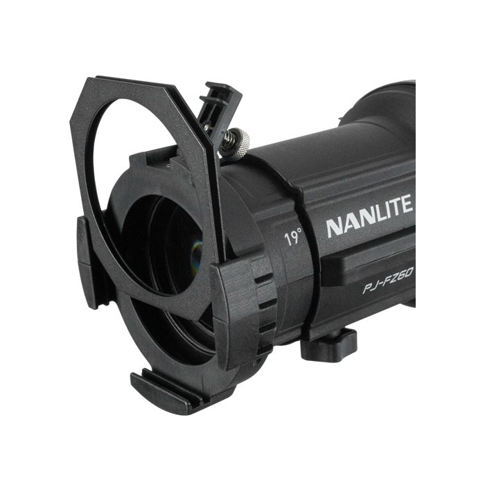 Achieve complex and bold lighting effects with Nanlite's complete optical system for the Forza 60C, 60B II, 60 II, 150, 150B, and the FS-60B. The Nanlite Forza PJ-FMM Projection Attachment with 19° Lens for FM Mount can increase the light output 17 times while still maintaining a smooth, even beam with minimal fall-off.