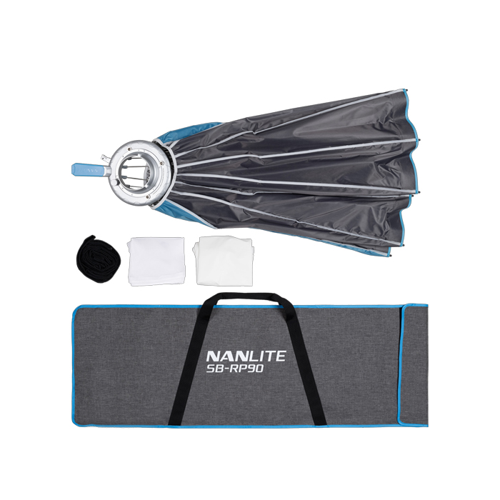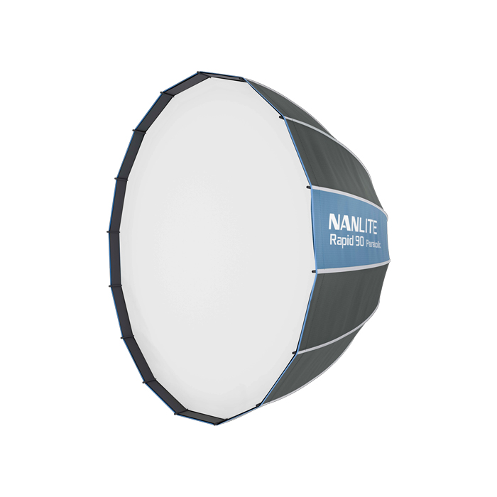 The Nanlite Rapid 90 is a high-quality softbox with a deep parabolic design that delivers excellent lighting performance and can be fully assembled and disassembled in seconds thanks to its rapid-latch speed ring. It has a Bowens Mount for ultimate compatibility and includes an egg-crate grid, two layers of diffusion and a carrying bag.