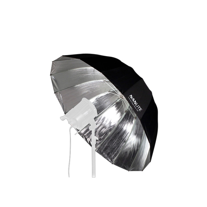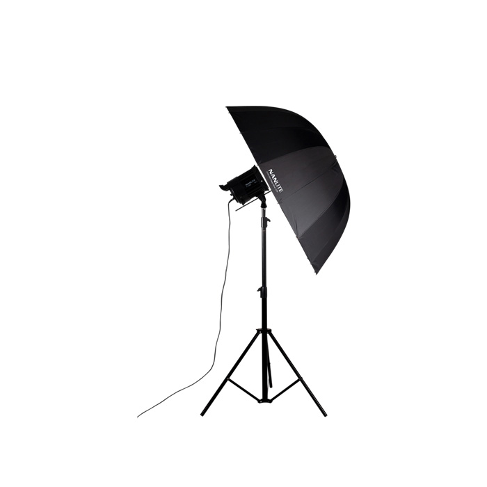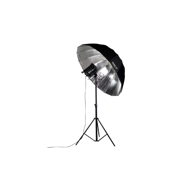 NanLite Silver Deep Umbrella135 skaber kontrastfyldt lys med skarpe detaljer og en wrap-around-kvalitet, samtidig med at den har øget retningskontrol og nem fjernstyring.