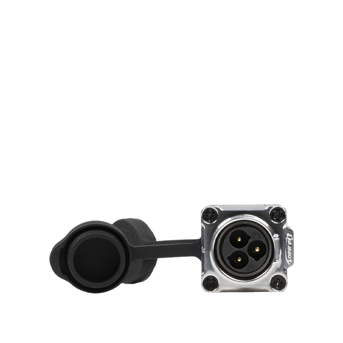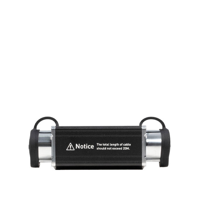 Used to couple two DC connection cables to extend the power supply distance. The symmetrical design at both ends of the coupler eliminates the need to distinguish the direction of cable plug connection. The coupler features an aviation connector compatible with a self-locking aviation plug, enabling quick and stable connection. It boasts an excellent protection rating (IP65), making it suitable for use in rain, snow, and dusty environments, ensuring electrical safety on set. It is equipped with waterproof covers to effectively prevent external moisture from entering in case of improper storage.