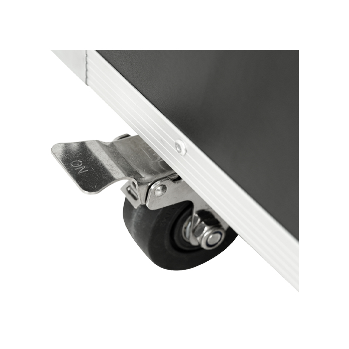 Including 4 omni-directional wheels and two side handles for movement and pickup. Plus recessed wheel wells on the top case for stacking multiple cases for storage or transport.