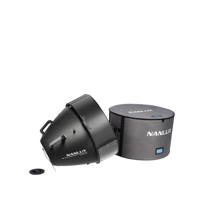 Nanlux introduces the NL70 Parallel Beam Reflector (RF-NL-PB), a professional lighting modifier with a well-defined long-throw beam and minimal light loss. It features a highly optimized optical design that works perfectly with the Nanlux Evoke 2400B and other Evoke series NL mount light fixtures, making it an excellent solution for shooting scenarios that require a high-intensity parallel beam, natural light with low light decay, or efficient light for use with reflectors.