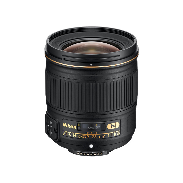 Vidvinkelobjektiv i FX-format med 28 mm brændvidde og en hurtig blændeåbning på f/1,8.