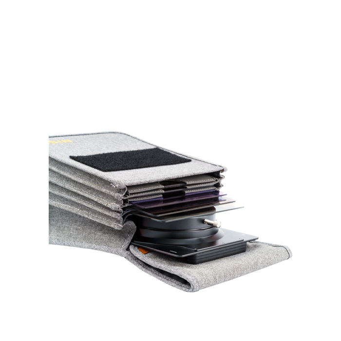 Holds up to 7pcs 150mm filters (4pcs 150x170mm + 3pcs 150x150mm) and one 150mm Holder (S5 or Q-Holder). It features an adjustable cross-body sling strap and can be carried as a shoulder bag, messenger bag or a waist bag.