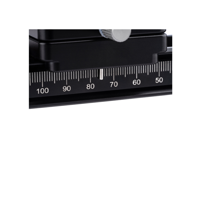 Collapsible thumb-screw knob for easy adjust and store. 360 degree rotating head, makes it very versatile in your setup. You have engraved index marks on both sides of the rail for fine adjustment.