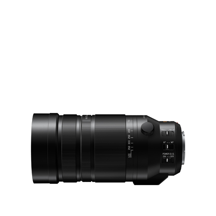 Den maksimale brændvidde kan udvides op til 800 mm (full frame ækvivalent 1.600mm) med telekonverteren DMW-TC20 (ekstraudstyr). Med DMW-TC14: 1.4x teleconverteren, op til 560mm (full frame ækvivalent 1120mm)