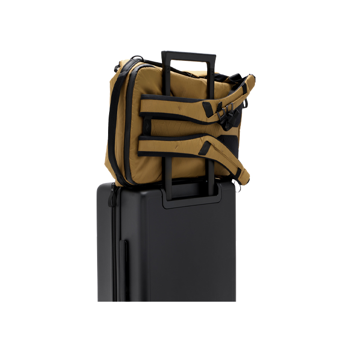 Coyote colorway bags feature a shell made from Coyote X-Pac VX-21 Ocean Edition fabric. Originally developed as a high-performance sailcloth, X-Pac is an iconic fabric known for it's light weight and durability. VX-21 Ocean Edition is a special version of this fabric made from 100% recycled fishing nets.