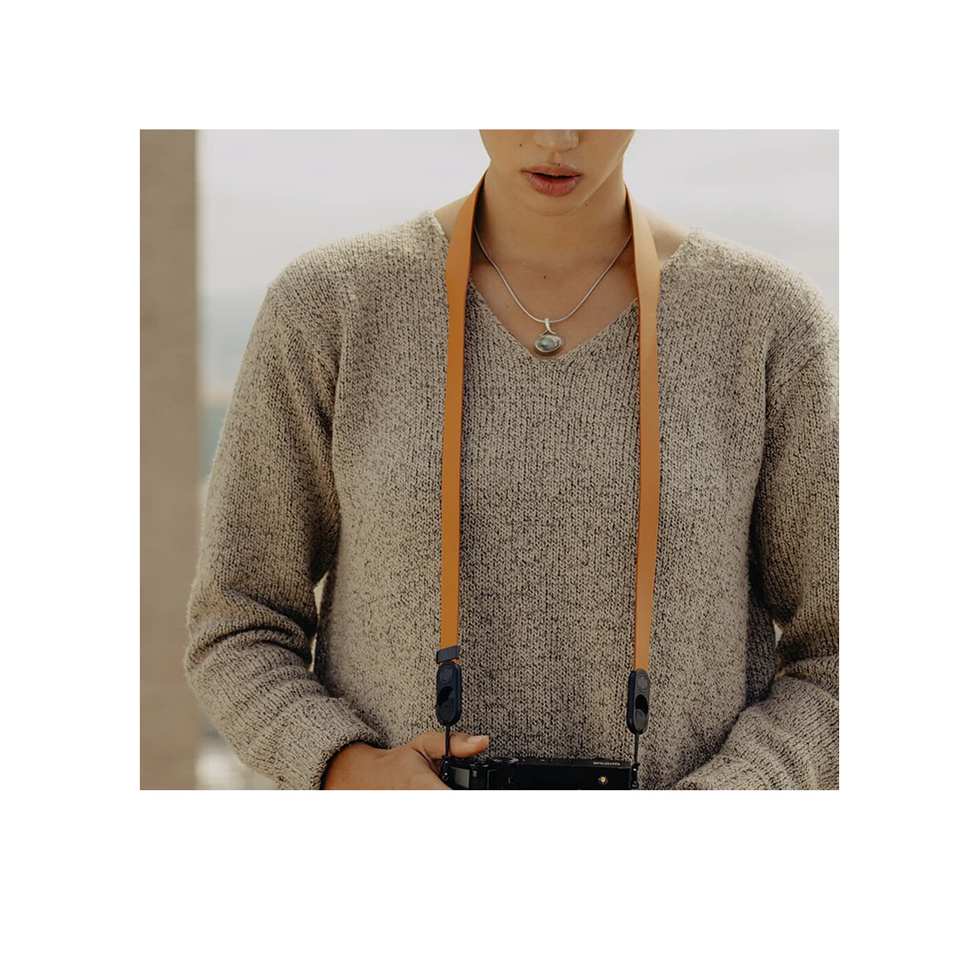 Den eksklusive full-grain bovine læderrem afsluttes sømløst i low-profile Anchor Link quick-connectors. Connectorerne er en slankere version af det velkendte Peak Design-system og sikrer hurtig og sikker montering på kameraet. En elegant aluminiums accessory loop gør det muligt at fastgøre et ekstra Anchor, så du kan bære remmen på kroppen, når kameraet er afmonteret.