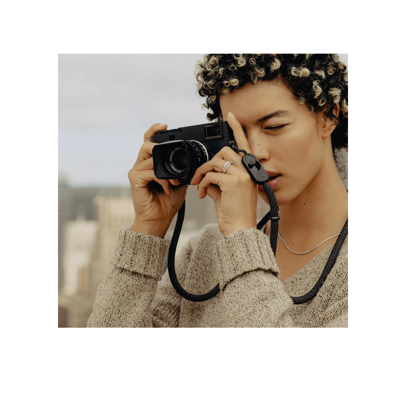 En elegant anodiseret aluminium accessory loop gør det muligt at fastgøre en ekstra Anchor, så du kan bære remmen på kroppen, når kameraet er afmonteret.