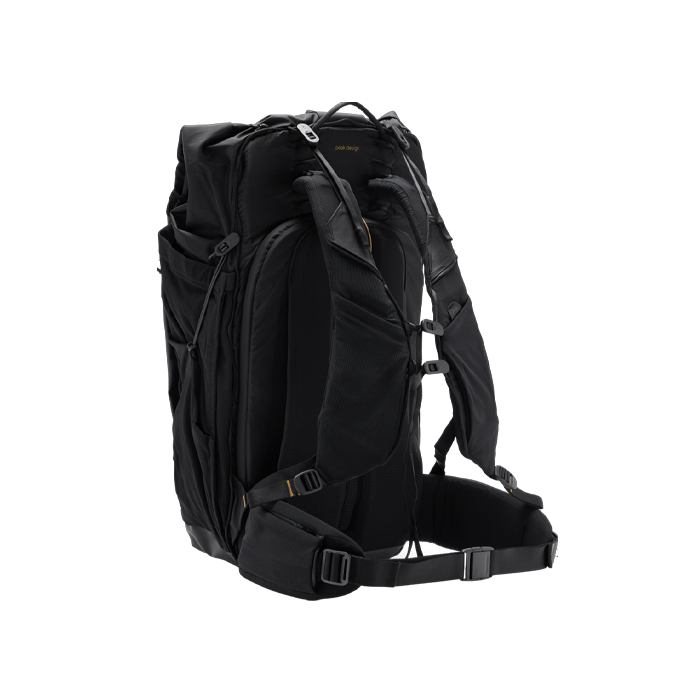 Andre unikke funktioner omfatter den patenterede Ultra Cinch roll-top-adgang til nem pakning og udpakning, som giver lynhurtig adgang med én hånd og 10,5L udvidelse. Et stort adgangspanel bagpå gør det nemt at pakke og giver også et ideelt format til udendørs kameratransport ved hjælp af Peak Design Camera Cubes, som kan fastgøres sikkert i tasken. 5 store udvendige Flex Pockets™ giver hurtig adgang til opbevaring af store ting som vandflasker, vandrestave, jakker og stativer.