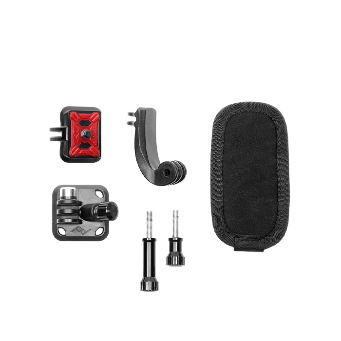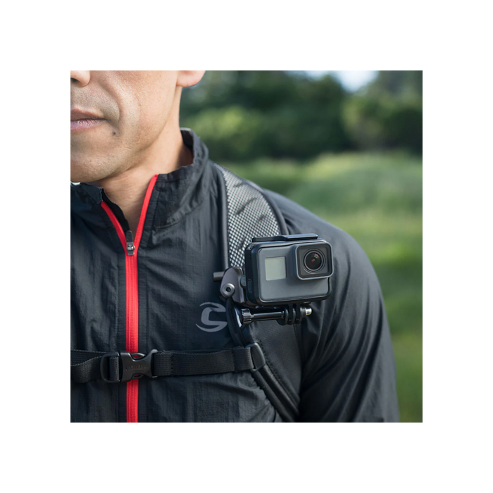 Brug P.O.V.- sættet sammen med Peak Design Capture clip (sælges særskilt) for at montere et GoPro®-kamera sikkert på en rygsæksrem, et bælte eller en lignende genstand.