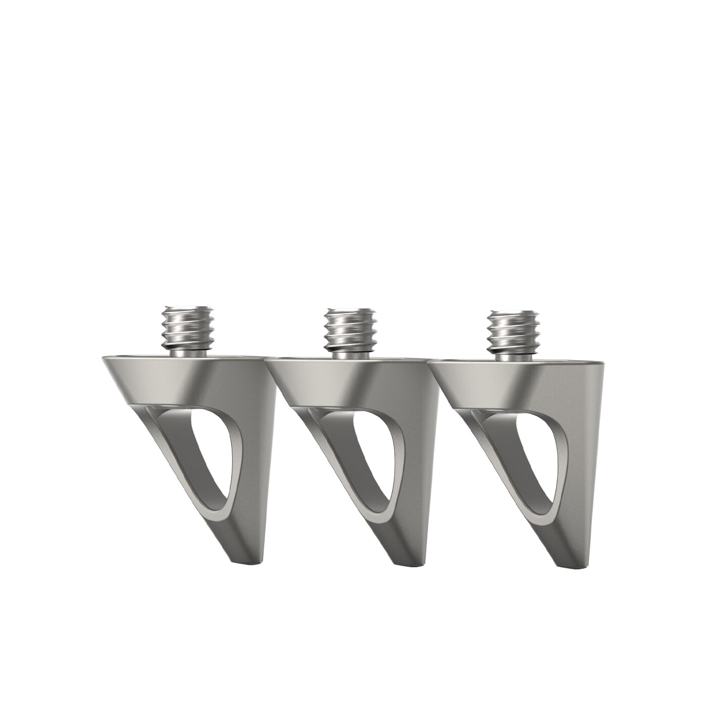 Ideel til optagelser på is, glatte klipper og løs jord eller grus. Også perfekt ved brug af tungere foto- eller video-setup i ethvert udendørsmiljø. Fjern blot de standard gummifødder i bunden af dit stativ, og monter disse 3 spike-fødder. Monteres med 3 stk. 4mm hex-skruer. Hex-værktøj medfølger alle stativer, og et ekstra værktøj medfølger i hvert Spike Feet-sæt.