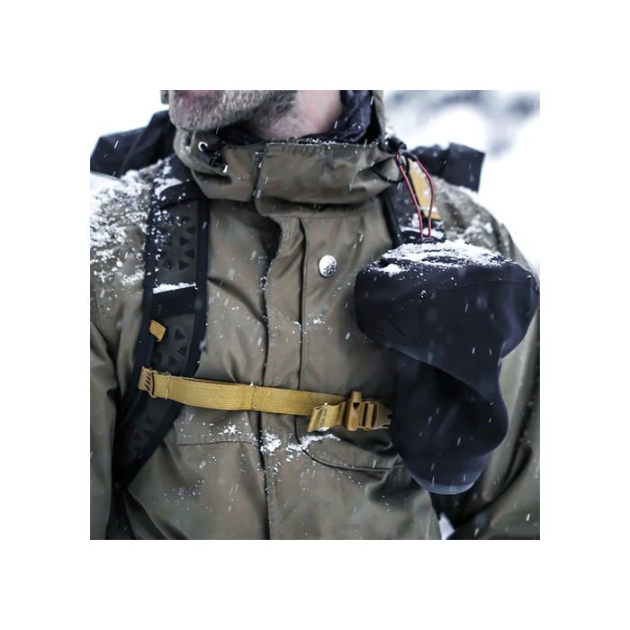 Peak Designs Shell har et enestående tætsiddende design der anvender et elastisk stof med en vandtæt membran til at holde dit kamera beskyttet, uden at størrelsen øges, eller dit arbejde forstyrres.