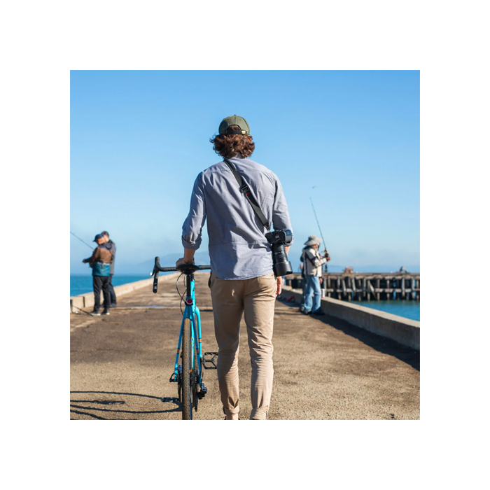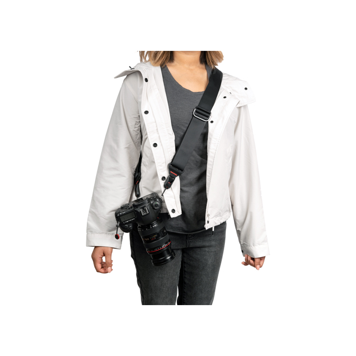 Slide er alt det, som de andre kameraremme ikke er. Den er alsidig: Brug Slide som en sling på tværs af kroppen, om halsen eller over skulderen.
