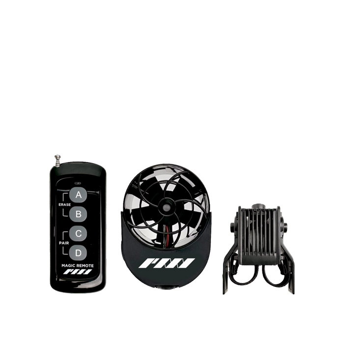 SmokeGENIE Remote Control Haze Fan Adapter, sørger for at sprede tågen/røgen fra SmokeGENIE og give et større område et jævnt dis. Med den ekstra lange hængetid for røgen, der genereres fra SmokeGENIE, hjælper denne ventilator med at sprede og skubbe røgen ud for at give et fint dis i det påførte område.