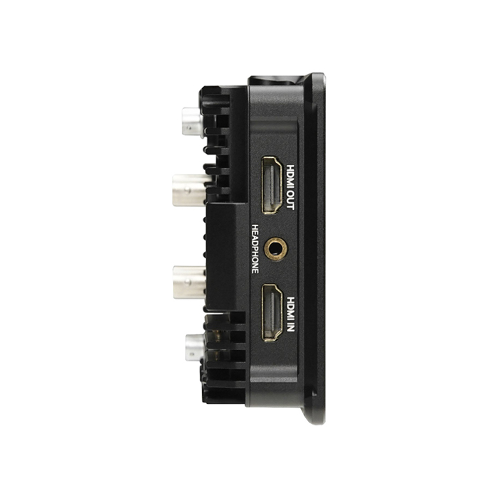 Also, there are 3G-SDI input and output ports that support resolutions up to 1080P60. The SDI video output can output a clean video feed, but it can also output the image with a 3D LUT and peaking if needed. The BM5IV can be placed anywhere you need in the video signal chain with HDMI cross-conversion.