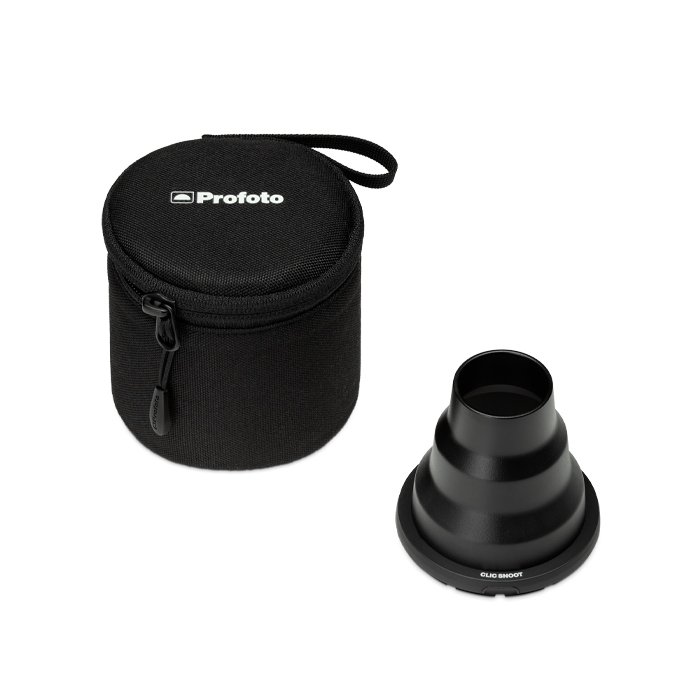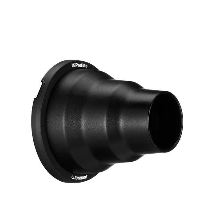 Thanks to Profoto's magnetic mount design, the Clic Snoot 'clicks' on and off instantly and can be stacked over Clic Grids & Gels.