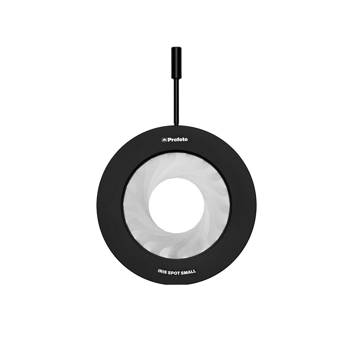 Iris til Spot Small der giver dig mulighed for at justere diameteren af lysstrålen. Ved at åbne eller lukke irisen kan du kontrollere, hvor bred eller smal strålen er, hvilket bestemmer koncentrationen af spotlightet.