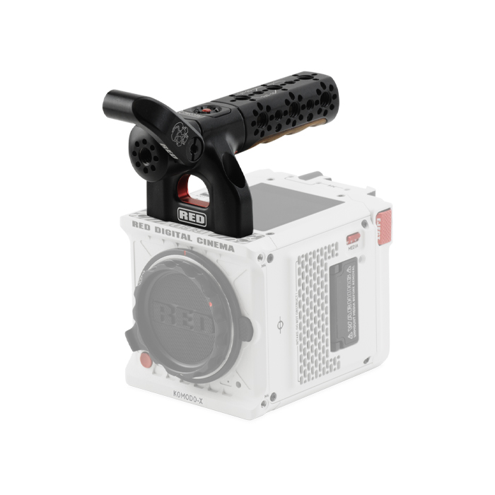 The RED Compact Top Handle easily mounts to the top of the Komodo, Komodo-X, V-Raptor or V-Raptor XL camera bodies while offering a combination of comfort and utility for carrying or shooting with your camera.