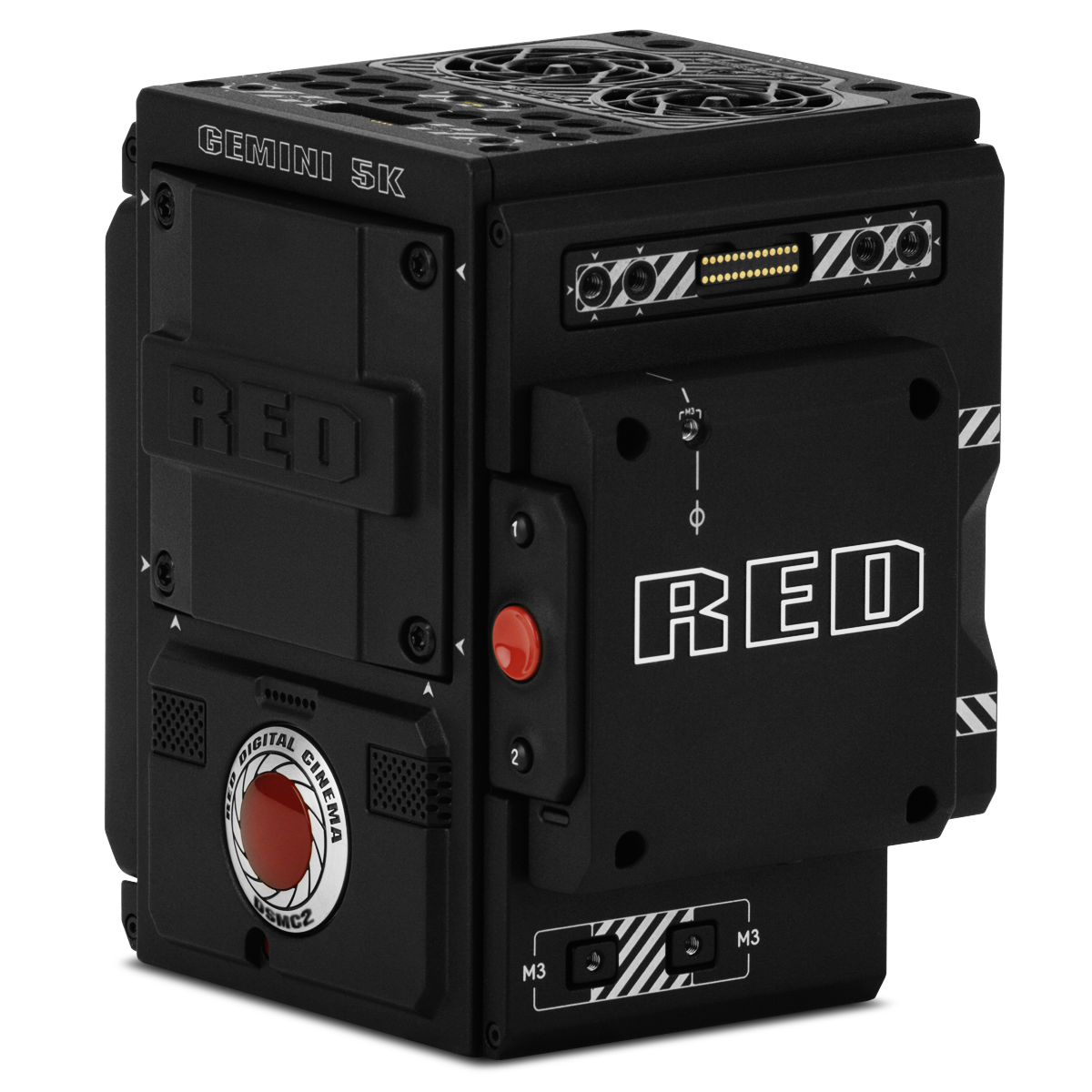 For flexibility in any situation, GEMINI is RED's highest sensitivity sensor to date and offers significantly increased performance in low-light settings and improved performance in shadows. A DSMC2 GEMINI is capable of data write speeds of 300 MB/s, and can simultaneously record in REDCODE RAW and Apple ProRes or Avid DNxHR/HD.